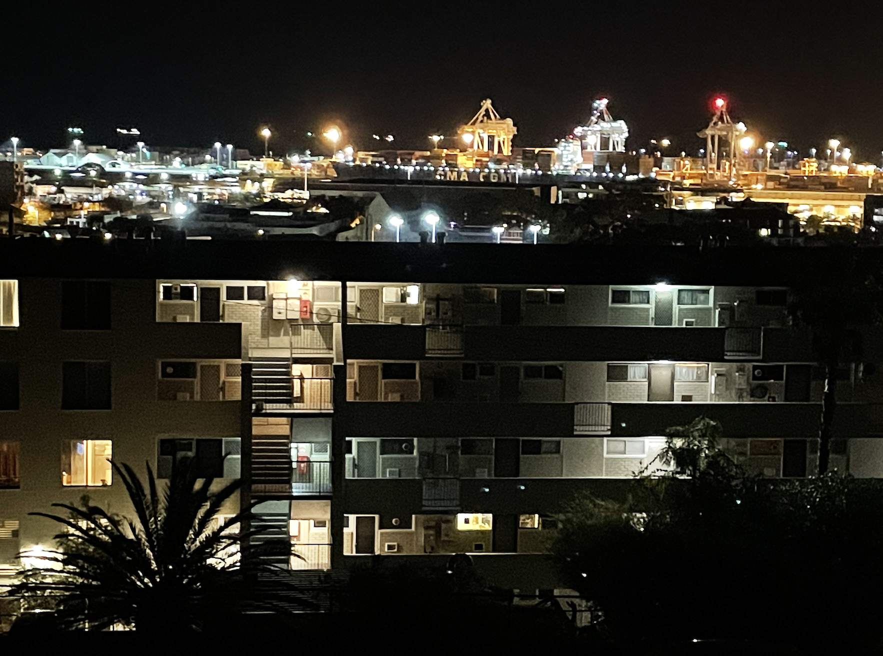 When it's not deadly silent the air is filled with the sounds, smells and languages of the night folk. Gangs of teens drape themselves over their cars hooting with laughter, families play in the sand with babes not following a Western bedtime, men smoke and jibe in a round, women huddle in deep discussions, joggers jog to tunes almost audible, dog walkers nod hello, lovers in covers hide, and night heron, still as statues hope you will not notice them.